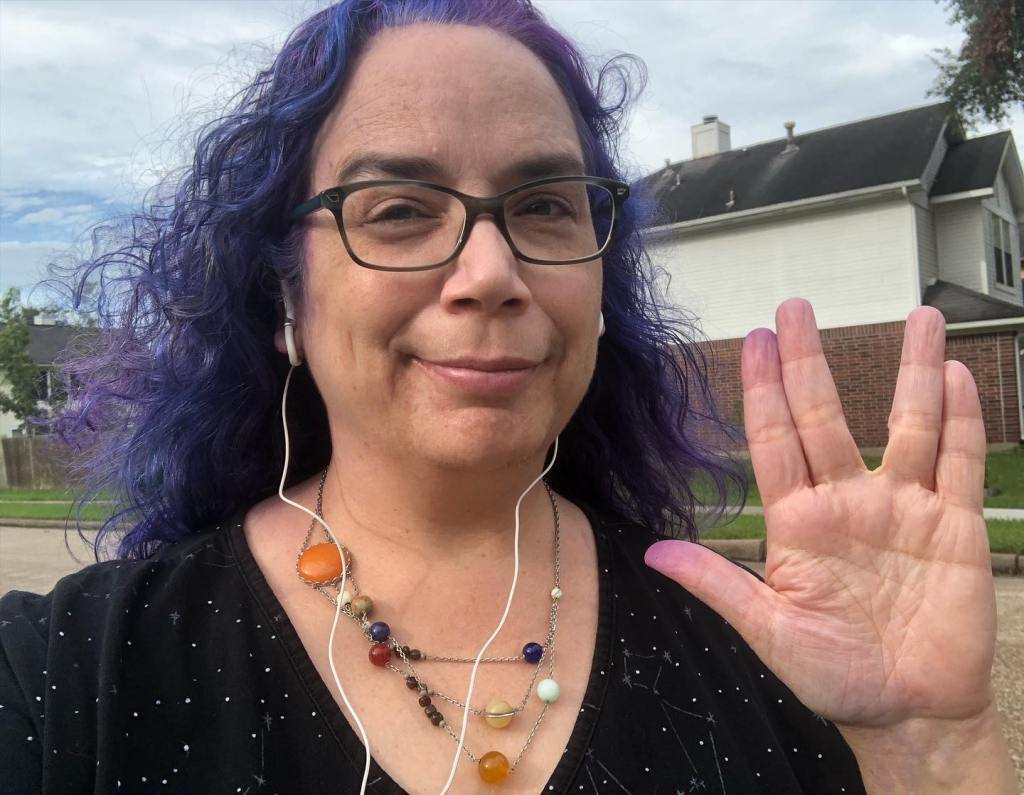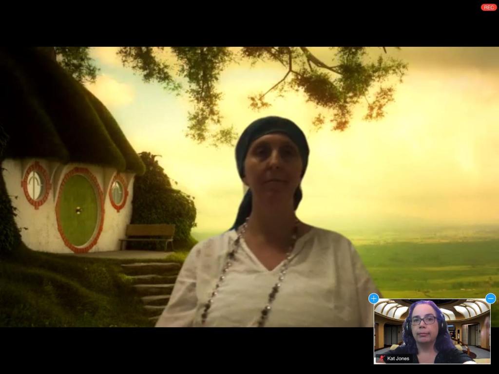 The first Zoom of the day was a meditation and light yoga session with Erin Wilcox, specially themed with the Live Long and Prosper hand gesture. Very nice start to the convention!