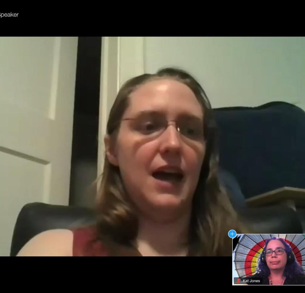 It’s feeling really late at this point, but I’m stubbornly determined to stay on New Zealand time. I hang out in one of the virtual bars, and someone mentioned there’s a game show at 8:00. Game show! Well, horror isn’t my jam, but I’ve never seen a Worldcon game show that wasn’t awesome and hilarious. Kyla Lee Ward, Frances Hardinge, and Elizabeth Knox took turns at a story about Scarey Stuff, and we, the audience, determined who was the scariest. The Scariest got to finish the story. Frances Hardinge won this evening, but they were all fantastic.