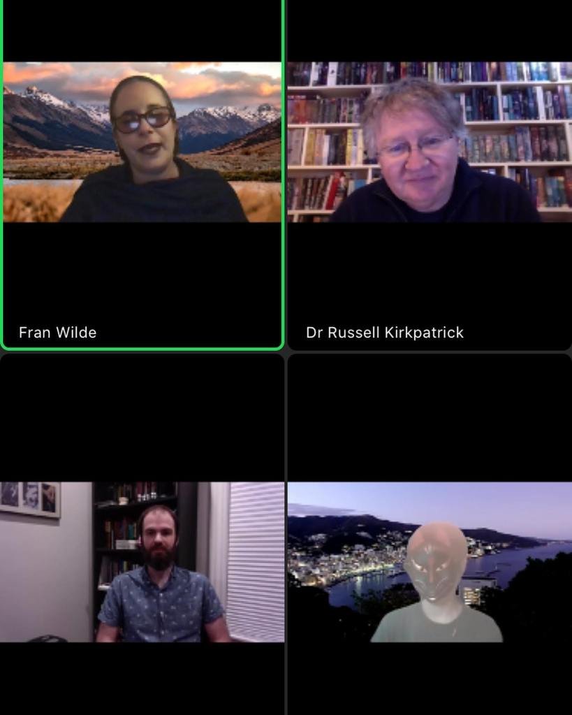Next was a panel on Climate Fiction / Climate Fact with Octavia Cade, Alex Acks, Arkady Martine, Katrina Archer, and Tim Jones: “What’s the relationship between fiction about climate change and real-world actions? Does where authors live and work affect their perspective, as they write about climate?”
